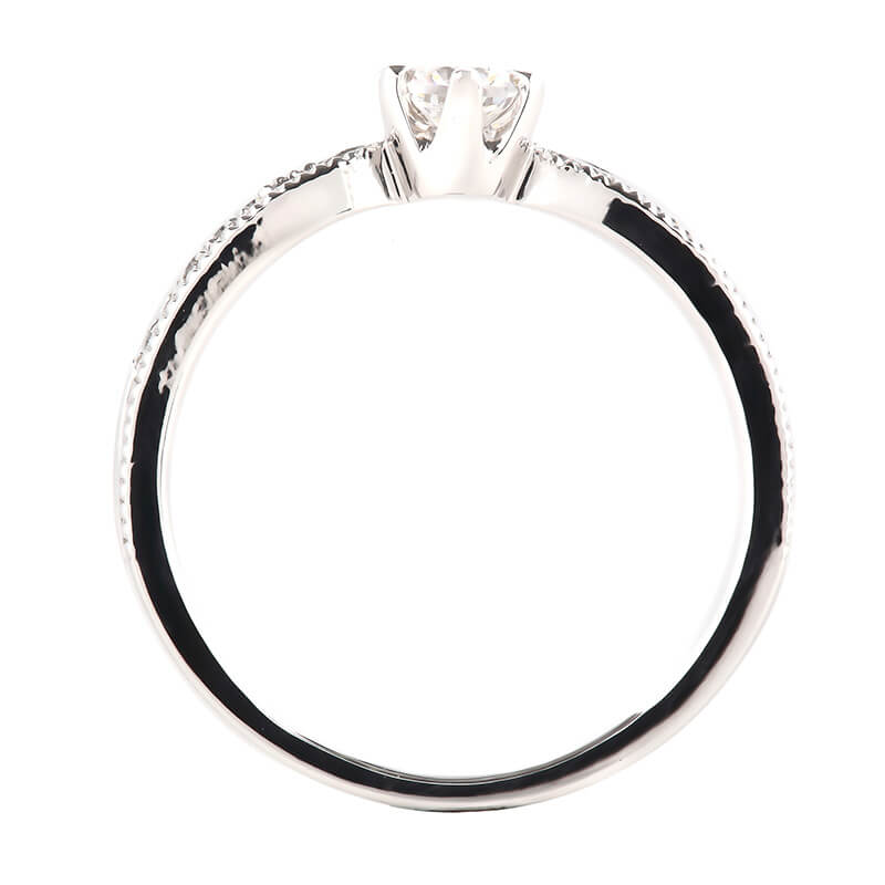 ・中心に向かい徐々に細くなることで、センタ―ダイヤを引き立たせるデザイン。